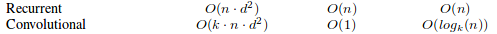CNN은 고정된 Input을 주입하고, 고정된 Output을 출력하는 반면, RNN은 임의의 Input과 Output을 다루므로 계산 시간이 더 오래 걸릴 수밖에 없다. 또한, CNN은 RNN보다 sequential operation (순차 계산)이 적어 계산 효율성이 더 높은 편이다. 같은 계산 비용으로 더 긴 history를 track할 수 있다.