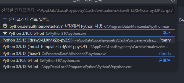 VSCode에서 poetry virtualenvs 보이지 않을때