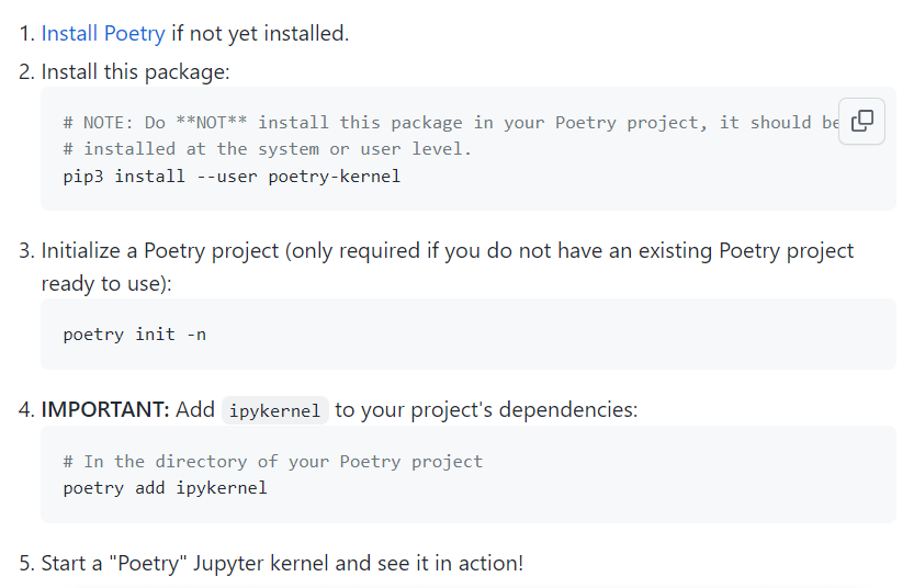 https://dev.to/mariazentsova/how-to-share-jupyter-notebook-on-github-with-poetry-2cdi https://dev.to/mariazentsova/how-to-share-jupyter-notebook-on-github-with-poetry-2cdi