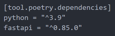 pyproject.toml은 dependency를 관리하는 파일이다. 해당 파일에서 [tool.poetry.dependencies] 아래에 직접 dependecy를 추가할 수 있다. 하지만, 더 편리하게 자동으로 poetry add를 통해 자동으로 dependecy를 추가할 수 있다.