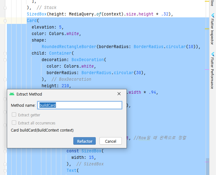 3. Ctrl + Alt + M, W Method, Widget으로 추출(Extract Method, Widget)